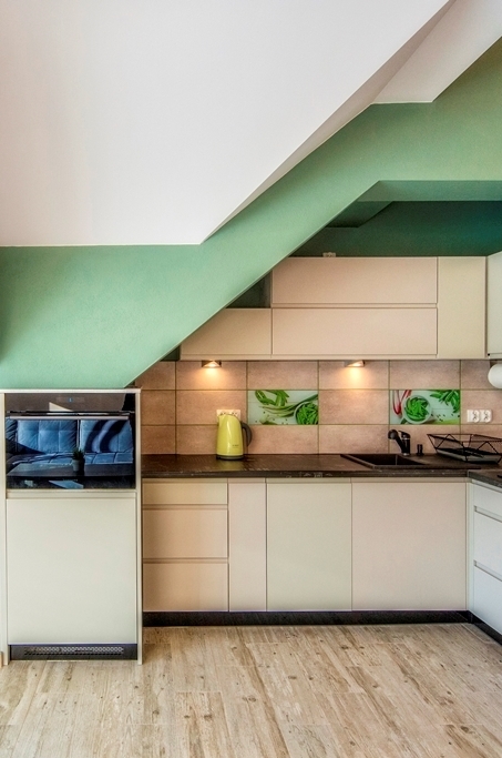Goście mają do dyspozycji dwupoziomowy 100-metrowy apartament posiadający: