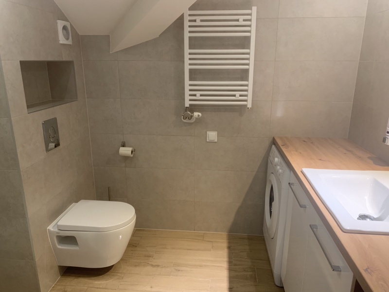 - łazienkę z pralką, prysznicem, suszarką do włosów oraz żelem/szamponem,